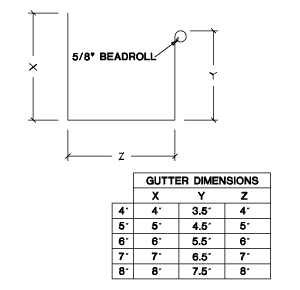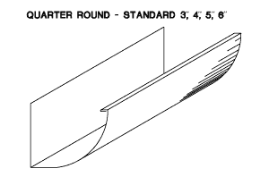 - Quarter Round Gutter: This profile provides exceptional performance and beauty in vertical fascia applications. Works well with slate or standing seam panels. Available with hemmed return or traditional bead roll.