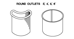 - Downspouts: Round downspouts available from 3" to 8" diameter. Square and rectangle available in any size.